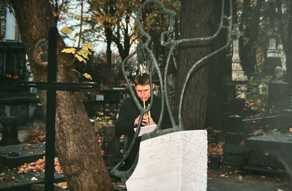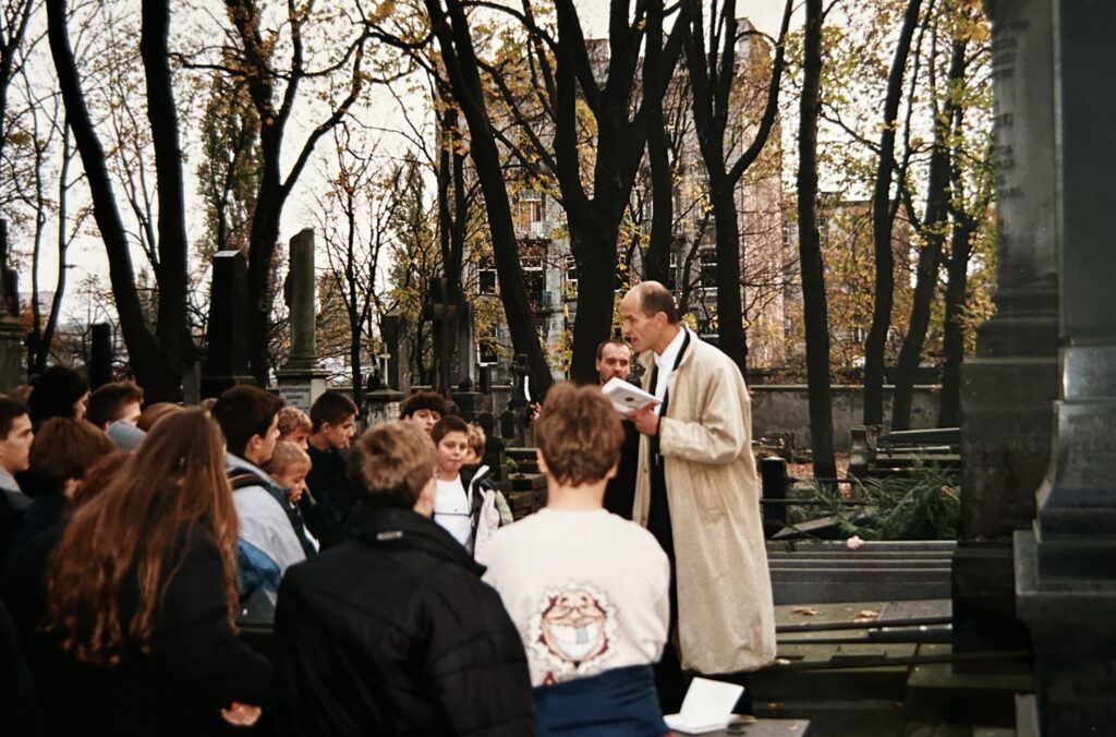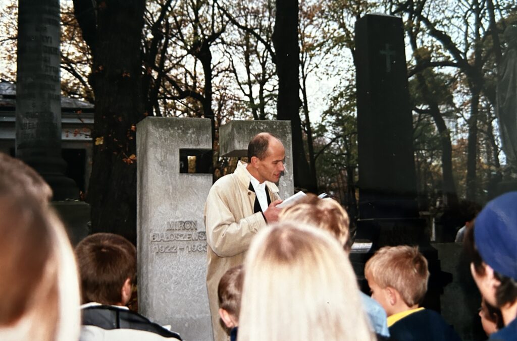 Spotkania na Cmentarzu Powązkowskim przy grobach Witolda Lutosławskiego i Mirona Białoszewskiego.
