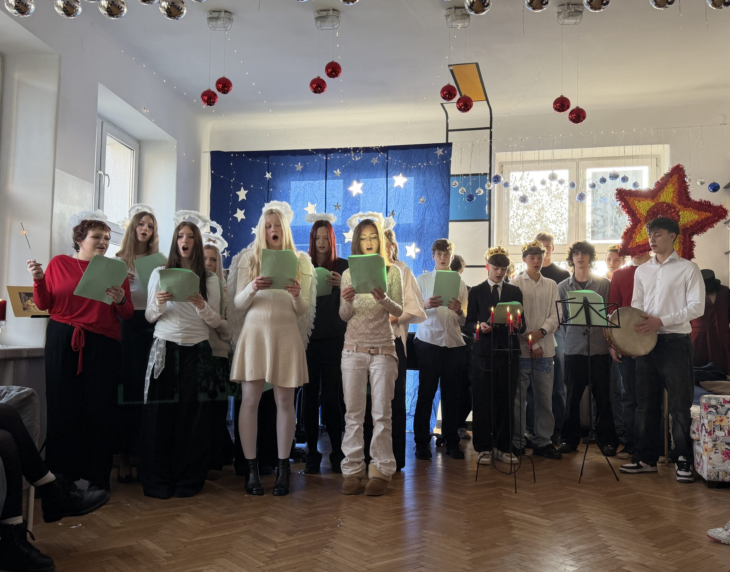 Spotkanie wigilijne dla liceum rozpoczęliśmy pięknymi kolędami Leona Schillera, które wprowadziły wszystkich w świąteczny nastrój.